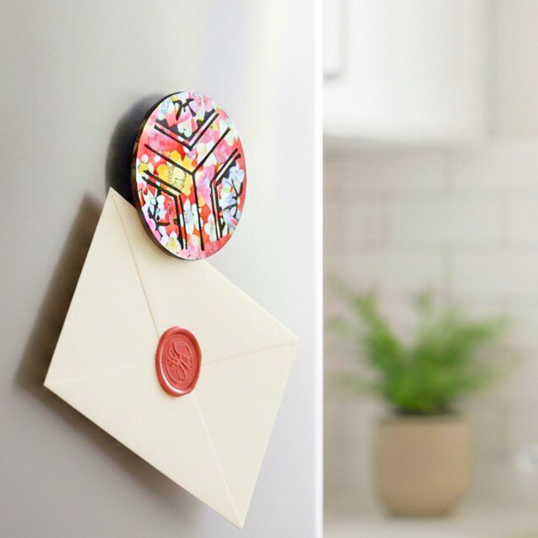 日本の伝統模様を取り入れた、温かみのある木製マグネット。
